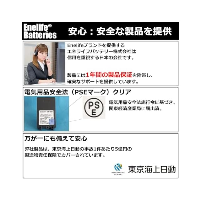 ◆5◆ <信頼性> 日本の会社が企画し、正規のPSE届け出、確実な1年製品ご提供。製品は5億円の製造物責任保険でカバーされています。【製造】ISO9001認証の信頼できる中国の委託工場で製造しています。