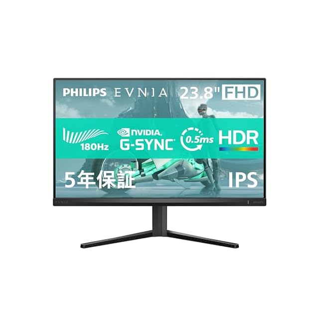 PHILIPS EVNIA ゲーミングモニター (23.8インチ/180Hz/フルHD/Fast IPS/超高速0.5ms/HDR10/G-Sync Compatible対応/FPS向け/Adaptive Sync/5年/チルト/HDMI2.0×1、DisplayPort1.4×1 /1920x1080/フリッカーフリー/ブルーライト軽減/電源内蔵) 24M2N3200L/11 | つむぎ屋