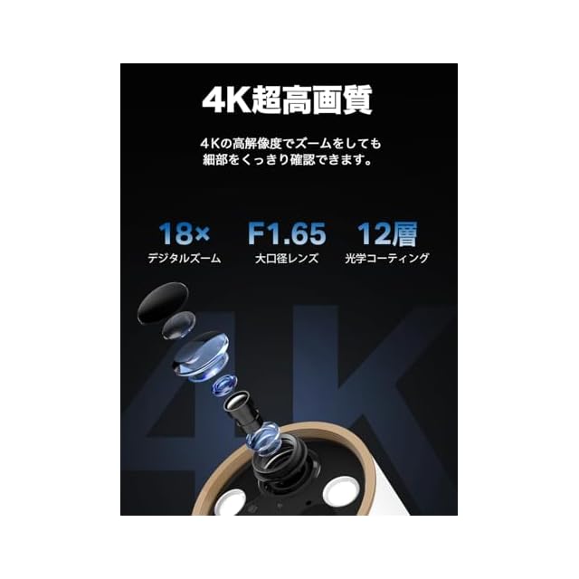 ✨【4K高画質】4K 800万画素の解像度とデジタルズーム機能で細部まで捉えて、鮮明な映像をお届けします。