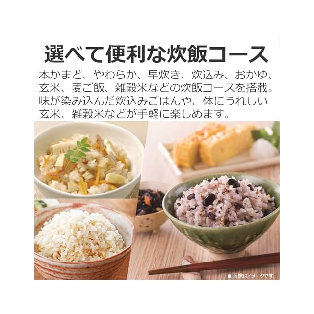 ✅【多彩な炊飯コース】ひたし時間を長くとることに加え、ひたし時の温度を細かく調節し、芯まで熱を伝えてごはんの甘みをアップさせる甘み炊きコース、冷えてもかたくならずおいしく食べられるお弁当コース、解凍後もおいしさつづく冷凍ごはんコース、ゆで卵・半熟卵の調理も簡単にできる調理コースなども搭載。