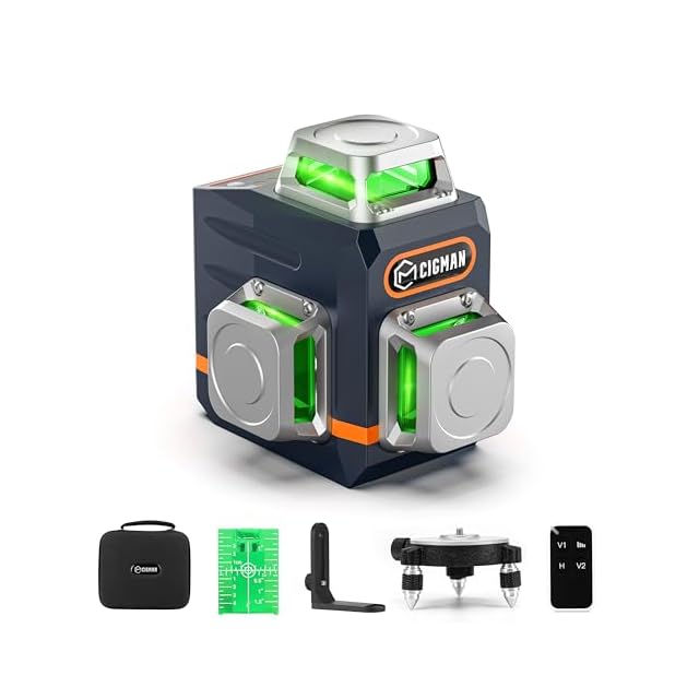 高精度12レーザーラインで完璧な位置合わせ:CIGMAN 360°グリーンレーザー墨出し器は、12本の超高輝度レーザーラインを搭載し、室内デザイン・タイル張り・型枠作業などの建設作業において、正確な水平・垂直調整をサポートします。付属のリモコンでラインの明るさや表示を簡単に調整可能で、DIY初心者からプロの施工者まで幅広く対応。安全基準はクラスII(<1mW)で安心。