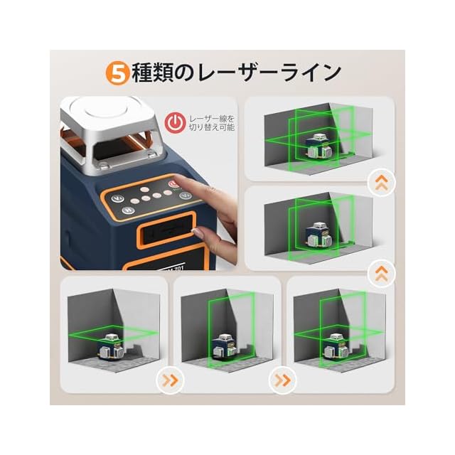 リモコン操作で快適な作業を実現:リモコンが付属しています。離れた場所からでもレーザーラインやモードを簡単に調整でき、作業効率を向上させます。プロの職人やDIY愛好者にとって非常に便利な機能です。