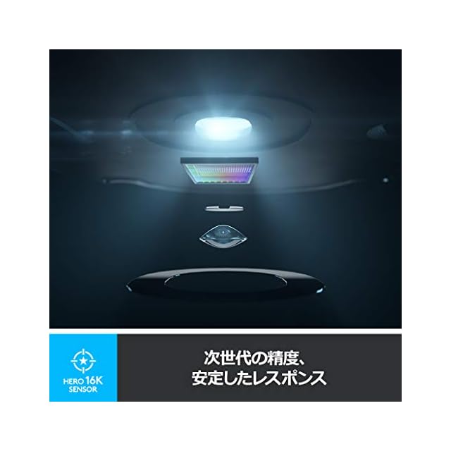 【HERO センサーさらなる進化】G703hに搭載した次世代HERO 16Kオセンサーは25Kに進化。精度性能約4倍、電源効率は約10倍向上し、最大のトラッキング精度は16,000DPIから25,000DPIにアップグレード。(25KにアップデートするにはGHUBファームウェアの更新が必要)