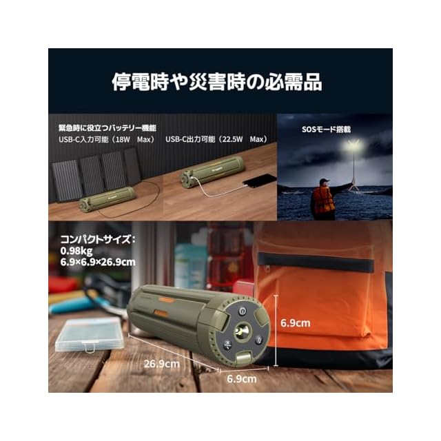 【長時間の内蔵バッテリー】 15600mAhの大容量バッテリーを搭載し、最大60時間の連続使用が可能です。また、USB-C出力ポートも付きので、災害時や停電時に他のデバイスへの充電もサポートしています。