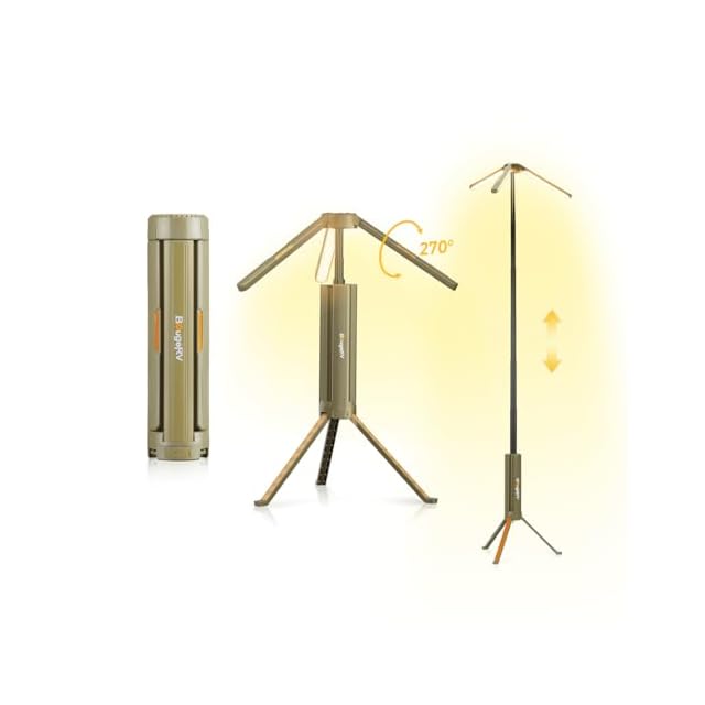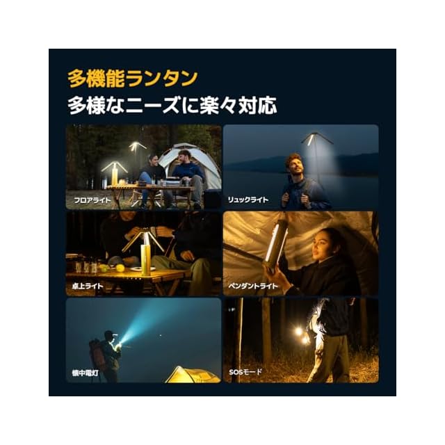 【多機能設計】 このキャンプランタンは折りたたみが可能で、高さ調整範囲は27cmから164cmまで自由自在です。また、吊り下げもでき、多様なシチュエーションで使用できます。さらに、明るさ調整、色温度切替(3000K、6000K)、SOSモードに対応し、懐中電灯としても使える万能なアイテムです。