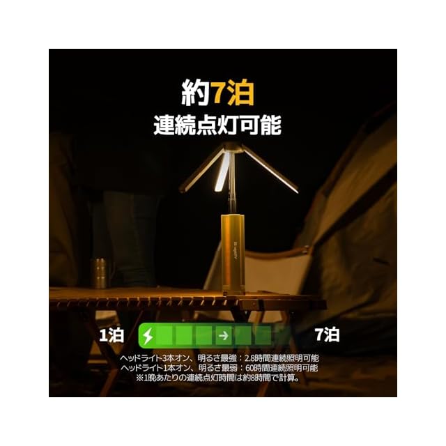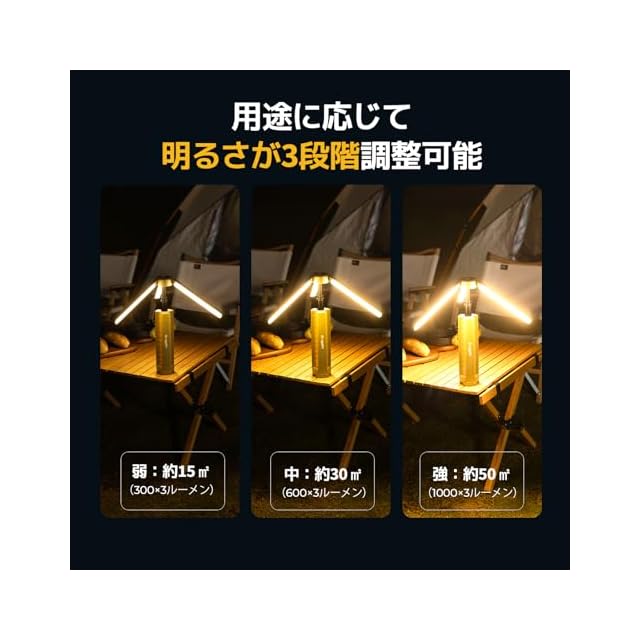 【高輝度3000ルーメン】 BougeRV CL04キャンプランタンは全点灯時に最大3000ルーメンの明るさを提供し、50平方メートルの広い範囲を照らします。キャンプやアウトドアでの夜間活動に最適です。