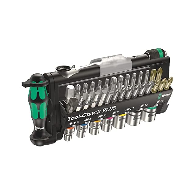 セット内容(点): 39。ソケット(5.5、6、7、8、10、12、13)、ビット[+]1、[+]1、[+]2、[+]2、[+]2、[+]3、[-]5.5、PZ1、PZ2、PZ2、PZ2、PZ3、T10、T15、T20、T25、T30、T40、TB10、TB15、TB20、TB25、TB30、六角3、4、5、6、8。
