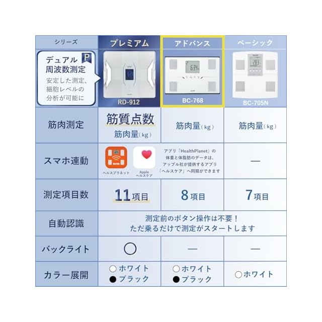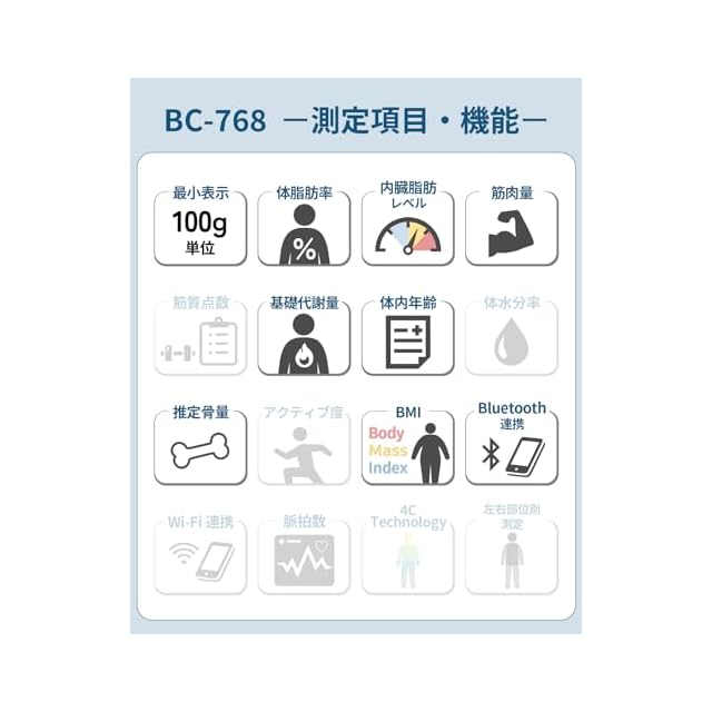 【✅7つの項目で健康管理】体重、BMI、体脂肪率、内臓脂肪レベル、基礎代謝量、筋肉量、体内年齢。1台で健康状態を見える化。