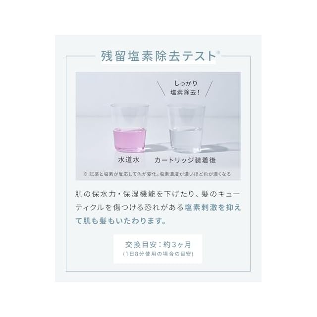 【髪や肌への塩素刺激を低減】塩素除去カートリッジで水道水の塩素を除去