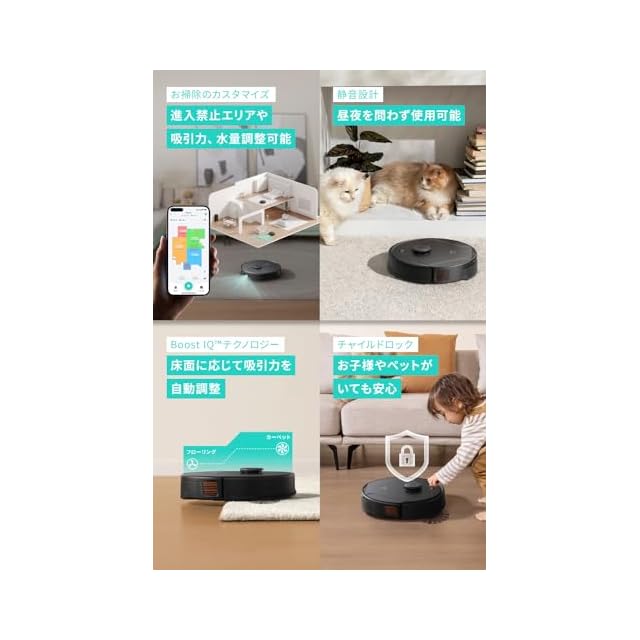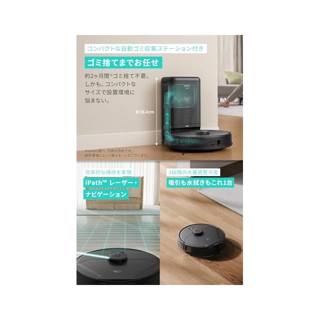 ゴミ捨てはおまかせ: 本体のゴミを自動でゴミ収集ステーションに集めるため、毎回のゴミ捨てストレスから解放されます。