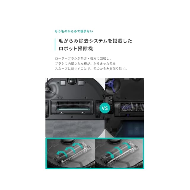 毛がらみ除去システム: 回転ブラシが前方・後方に回転し、ブラシに内蔵された櫛がからまった毛をスムーズにほぐすことで、毛のからみを自動で取り除きます。
