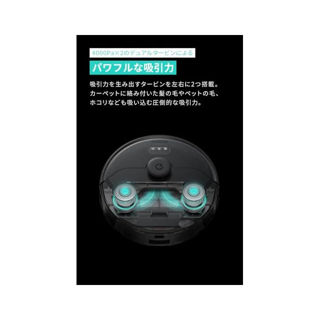 パワフルな吸引力: 4000Pa×2のデュアルタービンによる超強力吸引でゴミやカーペットにから絡まった犬の毛をしっかり吸引できます。