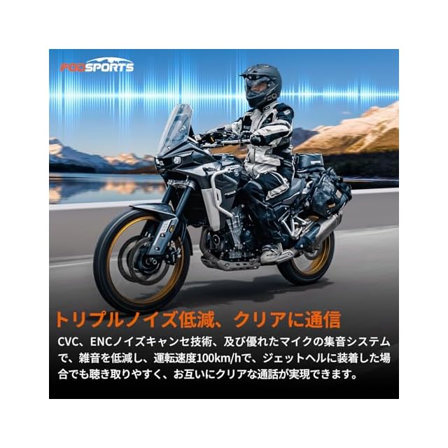 【ENC&CVCノイズキャンセル・他社インカムとの接続可能・IP67防塵防水】先進のCVC&ENCノイズキャンセリング技術を採用し、インテリジェントマイクにより通話エコーを除去し、エンジン騒音並びに風切り音等のノイズを低減します。高速道路でもお互いにクリアな音声が聞こえます。なお、本機種がユニバーサル接続モードを備えて、携帯2台などのBluetoothデバイスと接続できます。それに同社のインカム同士との接続だけでなく、日本では大人気のB+COM SB6XRなど異なるインカムとの接続通信も確認済みでした(※※※他の接続できない機種もある)。IP67防塵防水相当なので、ほこりの侵入を完全に防ぎ、一定の風圧下で短時間水に浸すことが避けることもできます。走行中に突然雨に降られても、慌てること無くお使いいただきます。
