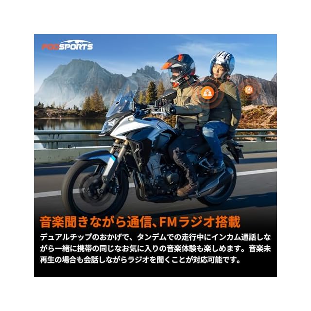 【デュアルチップ インカム・音楽ながら通話・音楽共有・FMラジオ付き】基本的にスマホといんかむの両方と接続したいという場合はチップ1枚しか入っていないインカムだと片方にしか接続することができません。FX7 バイク用インカムにはデュアルチップのおかげで、インカム通話と携帯の音楽・ナビの同時利用が可能になって、ナビ音声が入る時は自動的に音楽がミュートになりナビを優先してくれます。さらに、夫婦、恋人、友人とか2人のライダーが走行中に会話しながら音楽共有する対応も可能です。一緒に同じなお気に入りの音楽も楽しめるので、タンデム走行時などにおすすめの商品です(※音楽共有距離は10M)。76MHz~108MHz周波数帯の受信チップを搭載し、通勤・通学でもソロツアーでもリアルタイムに天気予報や交通情報やスポーツ中継などの放送情報を知っていますので、一人での走行中さえ寂しくなくて、ますますライダーの必需品もなりました。