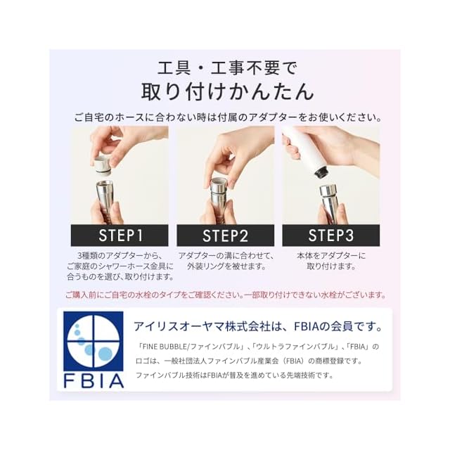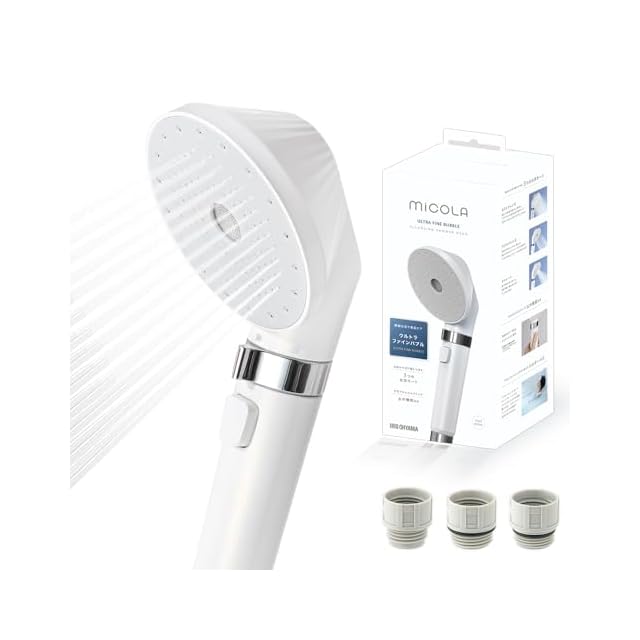 アイリスオーヤマ シャワーヘッド マイクロナノバブルよりも上位モデル ウルトラファインバブル 節水約50% 毛穴洗浄力約61%UP 選べる3つの流水モード 3種のアダプター付き FBIA会員認定 保温保湿 毛穴汚れ対策 美肌 クレンジングシャワー シェルホワイト MiCOLA | つむぎ屋