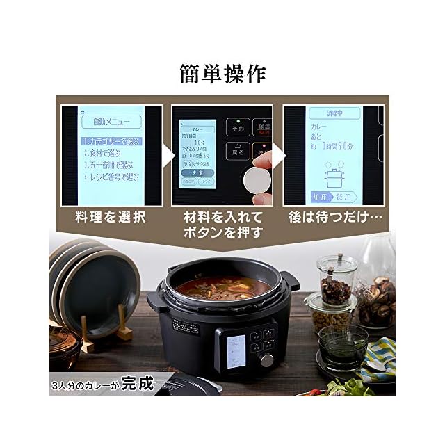 【ボタンを押すだけ3STEP】1.料理を選択 2.材料を入れてボタンを押す 3.あとは待つだけ!火を使わないので目を離していても安全。待っている間に他の調理や家事もできます。