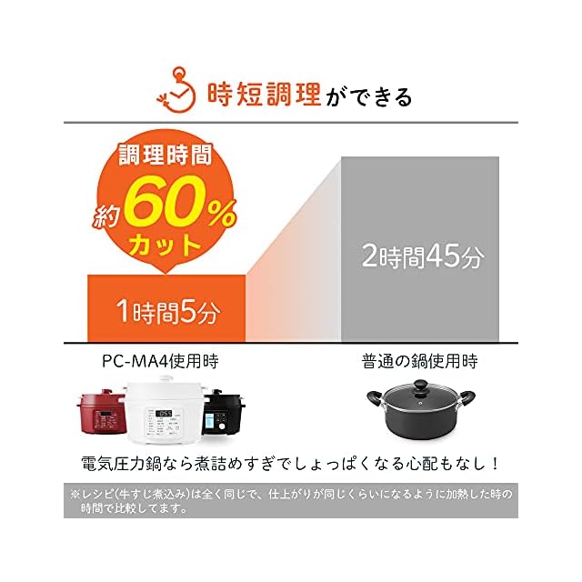 アイリスオーヤマ(IRIS OHYAMA) 電気圧力鍋 圧力鍋 4L 3~4人用 低温調理可能 卓上鍋 予約機能付き 自動メニュー90種類 ガラス蓋付き レシピブック付き ブラック PMPC-MA4-B | つむぎ屋
