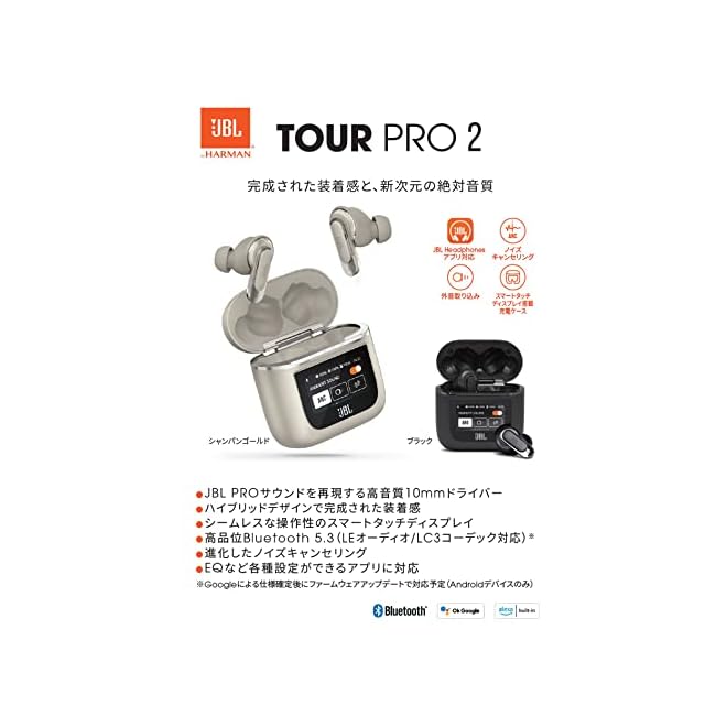 商品名:JBL TOUR PRO 2 ワイヤレスイヤホン bluetooth ハイブリッド ノイズキャンセリング/マルチポイント/IPX5/ワイヤレス充電対応/スマートタッチディスプレイ搭載/ブラック/JBLTOURPRO2BLK 小