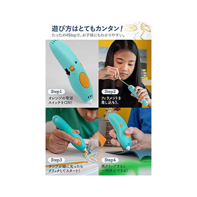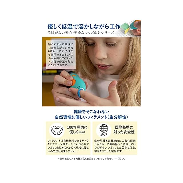 ✅【低温設計】危険がない安心・安全なキッズ向けシリーズ!触れる部分に高温になる部品がないため6歳以上のお子様から使用できます。ノズルから出たフィラメントは指で修正を加えることもできます。