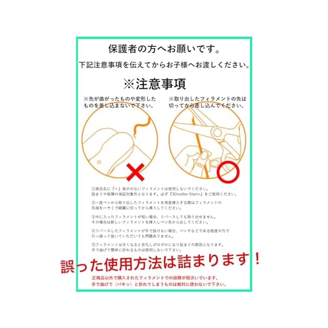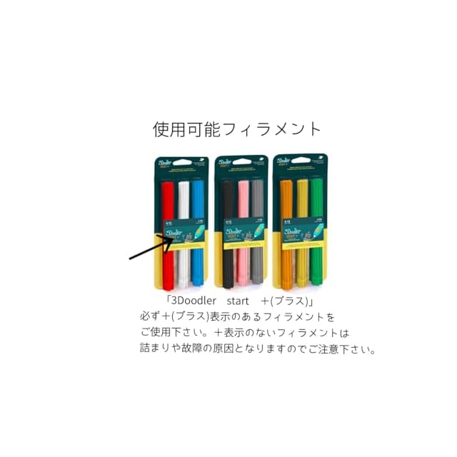 ✅【このフィラメントは”3Doodler Start +”専用の規格です】他の製品での使用はできません。また他ブランドのフィラメントを”3Doodler Start +”で使うこともできません。万が一、他ブランドのフィラメントを使って本体が故障した場合、の対象外になります。お気をつけください。 フィラメントの長さは約15cm、太さは約2.5mm。