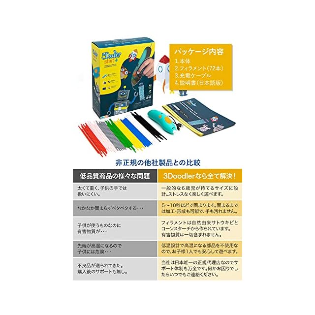 商品名:【公式 低温設計】3Dペン【世界350万販売】3Doodler Start+ アートペン キッズ 女の子 男の子 誕生日 プレゼント 子供 おもちゃ 知育 玩具 クリスマス フィラメント 幼稚園 保育園 小学生 立体 ペン お絵かき 制作 自由工作 ワイヤレス 5歳 6歳 7歳 8歳
