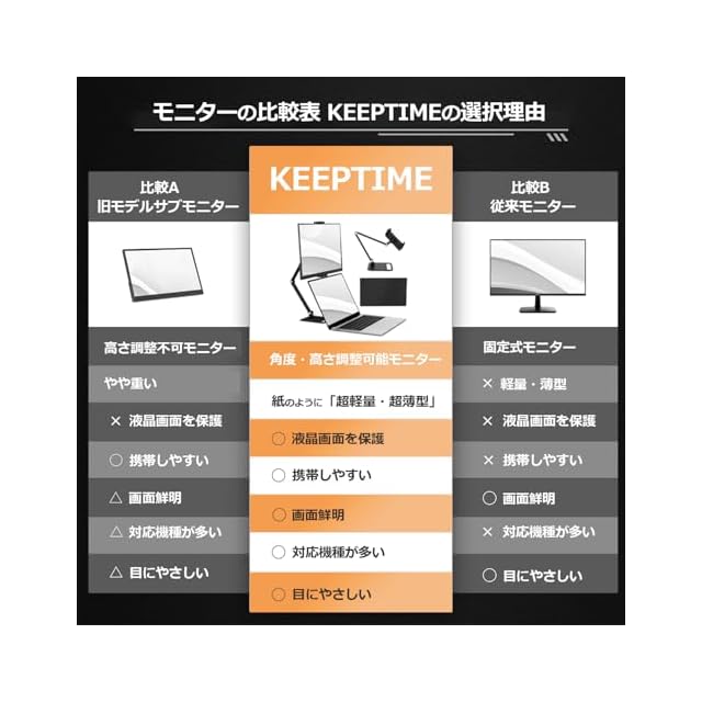 商品名:KEEPTIME モバイルモニター 15.6インチ モバイルディスプレイ 卓上スタンド付き 高輝度300nit 100%sRGB広色域 1920x1080FHD 持ち運びモニター 軽量 薄型 IPS液晶パネル USB Type-C/Mini HDMI端末 PS4 PS5/XBOX/Switch/PC/Macなど対応 商務会議 在宅勤務 リモートワーク