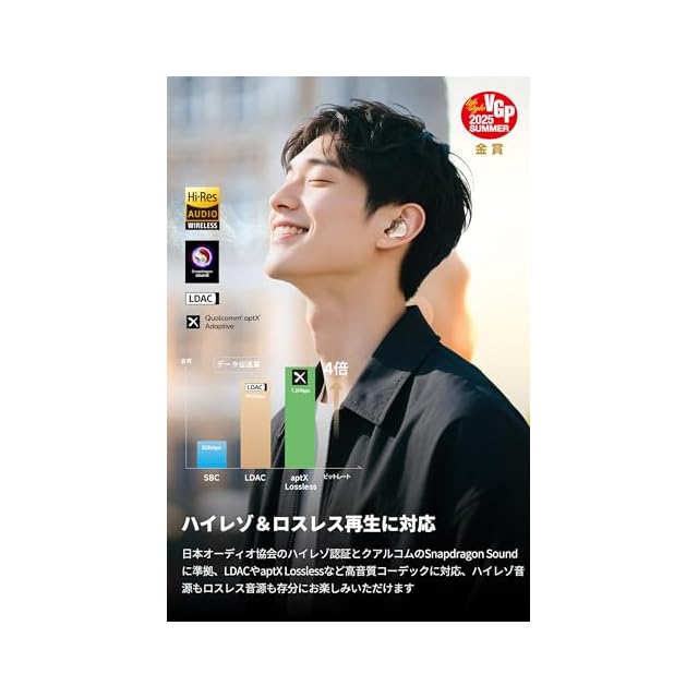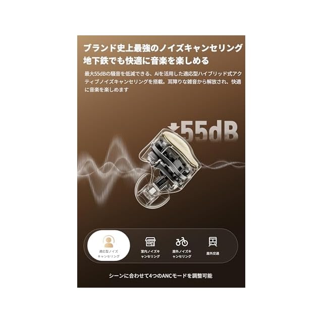 【ハイレゾ&Snapdragon Soundに準拠、ハイレゾ・ロスレス音源を自在に楽しめる】日本オーディオ協会のHi-Res認証に加え、Snapdragon Soundにも対応。コーデックにaptX Losslessを選択すれば、ワイヤレスでもCD品質のロスレスサウンドを実現。LDACを選択すると、SBCの約3倍・990kbpsというビットレートで最大24bit/96kHzのハイレゾ音源を再生できます。aptX Adaptiveを選択すれば、接続状況に応じてビットレートを自動調整する技術により、高音質と安定した接続を両立できます(注:それぞれのコーデックに対応した再生機/スマートフォンが必要です)。【デュアル高性能BAドライバー+大口径φ12mm複合素材ダイナミックドライバーの組み合わせで、ワイヤレスでHiFi音質を実に体験可能】2基の高性能バランスド・アーマチュア(BA)ドライバーを搭載し、高域の繊細さと中高域の明瞭さを圧倒的な解像度で再現。ボーカルや楽器の細かなニュアンスまで忠実に描き出します。低域には、φ12mmの特製PU+ウール複合素材振動板を用いたダイナミックドライバーを採用し、弾力ある深みと自然な中低音を実現。3基のドライバーを組み合わせたハイブリッド構造により、各帯域を適切に再生します。さらに綿密なチューニングを施すことで各帯域のつながりと一体感を生み出し、音場の奥行きと臨場感をも再現します。専用アプリを使えば、イコライザー機能でお好みでカスタマイズすることも可能です。【ブランド史上最強55dBノイズ低減、ハイブリッドAIノイズキャンセリング】SOUNDPEATS史上最高クラス、最大55dBの騒音を低減できるハイブリッド式アクティブノイズキャンセリングを搭載、4000Hzという高帯域まで対応します。AIがリアルタイムで周囲の環境を分析し、自動で最適な抑制レベルに調整します。電車、カフェ、オフィス、自宅など、どのようなシーンでも静寂を確保し、音楽や作業に集中できる環境を提供します。余計な雑音から解放され、快適に音楽を楽しめます【6基マイクAI通話ノイズキャンセリング+人声強調外音取り込み機能、聴きたい声だけ、自然に聴こえる】左右合計6基のマイクとAIアルゴリズムによる通話ノイズキャンセリングにより、周囲の騒音をカットしながら、あなたの声だけをしっかり相手に届けます。L型風切音軽減構造も入れており、風が吹く場所でも安心。さらにcVc 8.0ノイズキャンセリング技術を採用することで相手の声もクリアに聞こえるため、ビジネス通話やオンライン会議もスムーズに。人声強調外音取り込みモードでは、人の声が増強され、アナウンスなど必要な音だけを自然に取り込めるので、イヤホンを外さなくても周囲とのコミュニケーションや安全確認が可能です。【最先端QCC3091+Bluetooth 5.4採用、遅延ゼロ感覚、安定のその先へ 】 搭載されたQualcomm製の先端チップQCC3091は、Snapdragon Sound S3 Gen1プラットフォームに準拠する、超低遅延と高音質伝送を両立した次世代プロセッサー。省電力化と電波干渉耐性も飛躍的に向上しました。人混みや地下鉄などでも接続が途切れにくく、音楽も通話も途切れない信頼性を備えています。60msの超低遅延でゲーム・動画鑑賞時の違和感を大幅に低減。ストレスフリーな操作感があなたの毎日を快適にアップデートします。【音質も、造形も。五感を満たす、Hi-Fiフラッグシップの極みへ】16以上の製造工程と6種類以上の高品位素材を惜しみなく投入。ノズル部分には金属メッシュとアルミ合金を融合し、陽極酸化(アルマイト)処理を施すことで、機能性と美しさを兼ね備えた質感に仕上げました。また、電磁波によるBAドライバーへの干渉を抑制することで、透き通るような高音と奥行きのある音場表現を確保しました。独自設計の筐体は人間工学に基づき、耳に自然と馴染むよう設計。わずかなズレも起こりにくく、長時間のリスニングでも快適な装着感が持続します。さらに、透明感あふれるクリスタルライクなシェルからは、緻密に構成された内部構造が透けて見え、まるで“音の工芸品”のような雰囲気。細部にまで宿るSOUNDPEATSのこだわりを感じていただけます。【バッテリー切れの心配なし、最大37時間のスタミナ】 イヤホン本体は約7時間、ケース併用で最大37時間の長時間再生が可能。さらに、10分間の急速充電で約2時間再生できるので、忙しい朝や出先での充電忘れにも安心。通勤・通学から出張、週末の旅行まで、長く、遠く、あなたの毎日にそっと寄り添うパートナーです。※弊社ラボにて、AACコーデック、音量60%、通常モード、ノイズキャンセリング機能オフで測定。再生時間は音楽再生時の時間であり、音量、再生内容、使用環境によって異なる場合があります。ANCモードは約4時間再生です。【2台同時接続機能&専用アプリあり、マルチな日常にスマート対応】スマホとPCなど2台の機器に同時接続できるマルチポイント機能を搭載。仕事中にPCで音楽を聴きながら、スマホの着信にも即座に対応可能。さらに、専用アプリ「PEATSAUDIO」と連携すれば、EQ(イコライザ