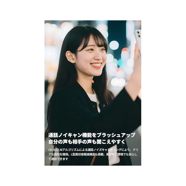 【6基マイクAI通話ノイズキャンセリング+人声強調外音取り込み機能、聴きたい声だけ、自然に聴こえる】左右合計6基のマイクとAIアルゴリズムによる通話ノイズキャンセリングにより、周囲の騒音をカットしながら、あなたの声だけをしっかり相手に届けます。L型風切音軽減構造も入れており、風が吹く場所でも安心。さらにcVc 8.0ノイズキャンセリング技術を採用することで相手の声もクリアに聞こえるため、ビジネス通話やオンライン会議もスムーズに。人声強調外音取り込みモードでは、人の声が増強され、アナウンスなど必要な音だけを自然に取り込めるので、イヤホンを外さなくても周囲とのコミュニケーションや安全確認が可能です