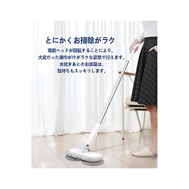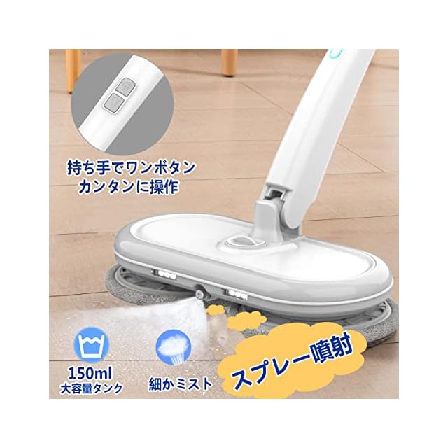 GOBOT 電動モップ コードレス回転モップクリーナー 軽量化 回転モップ 1台4役 水噴射 モップクリーナー 200回/分 替えモップ6枚付き 拭き掃除 充電式 水拭き フローリング 掃除 コードレスクリーナー フローリング 掃除 床掃除 自立式 掃除グッズ (ホワイト) | つむぎ屋
