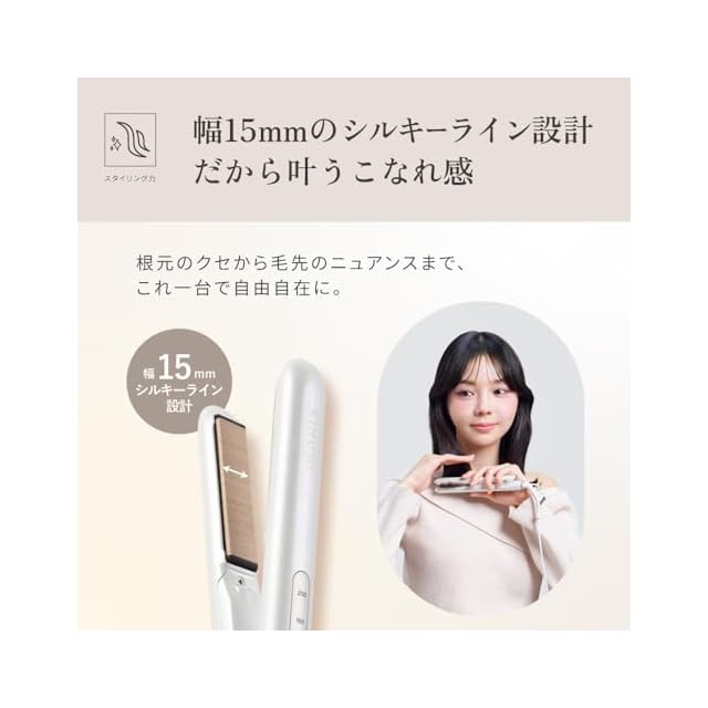 幅15cmのシルキーライン設計。根元のクセから毛先のニュアンスまで、これ一台で自由自在に。