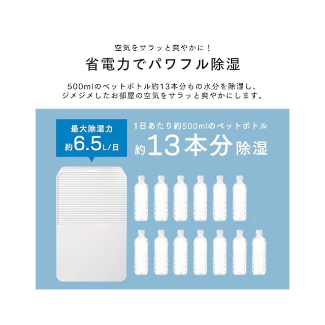 商品名:アイリスオーヤマ 除湿機 コンプレッサー式 6.5L 連続排水 キャスター付き タイマー付き IJC-R65 ホワイト