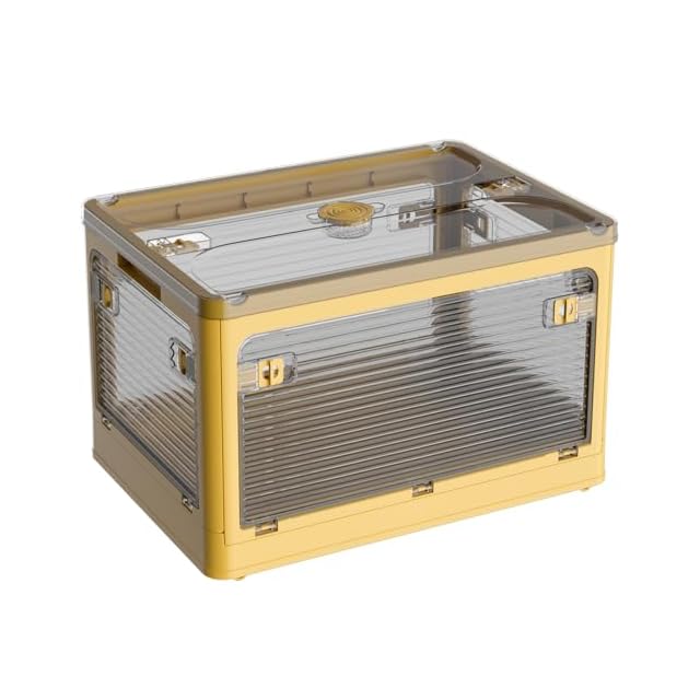 【折り畳み▪上に蓋/側面扉付き】収納箱界の大革新!使わない時に折りたたんで収納できます。スペースを取りません。側面四面も扉付き、収納にとても便利です。上にふた付き、物を入れやすい。蓋をロックできます。物を取るは側面扉から、ボックスを積み重ねる状態にも楽に物を取り出して、伝統的な収納ボックスに比べてもっと便利で、機能性が向上します。