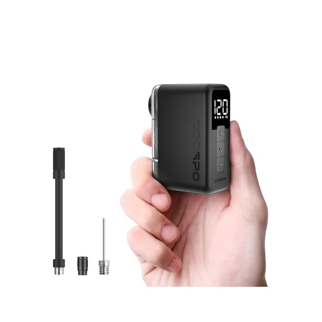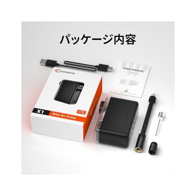 商品名:COOSPO X1 自転車 空気入れ 電動 120PSI ロードバイク 電動ポンプ 携帯 気圧表示 米式/英式/仏式 全バルブ対応 超小型 軽量 エアコンプレッサー 日本語説明書