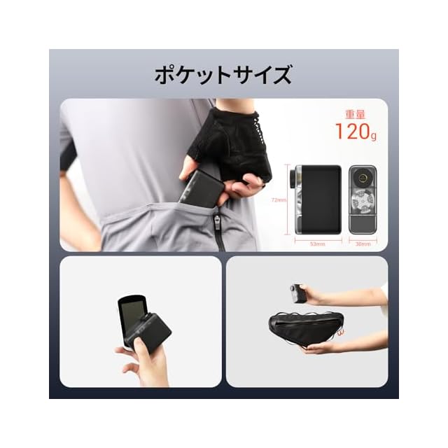ミニサイズ&簡単操作:重さわずか120g、サイズは72×53×30mmの超コンパクト電動空気入れで、ポケットやバッグにもすっぽり収まり、 携帯用として最適。LCDディスプレイとシンプルな3ボタン設計により、誰でも直感的に操作できます。