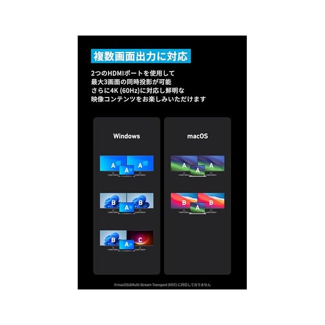 14の機能を1つに:データ転送用USB 3.1 Gen2 (10Gbps) 対応ポート3つなど14の機能をこれ1台で使用できます。また、4K (60Hz) 対応のHDMIポートを2つ搭載しているためデュアルディスプレイにも対応可能です。