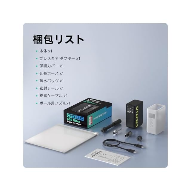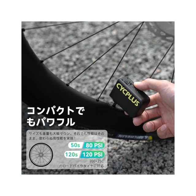 商品名:CYCPLUS 空気入れ 自転車 AS2 Ultra 120PSI電動空気入れ気圧表示自転車エアポンプ 携帯電動ポンプ 自動停止、エアーホース付き、マウンテンバイク、ロードバイク用