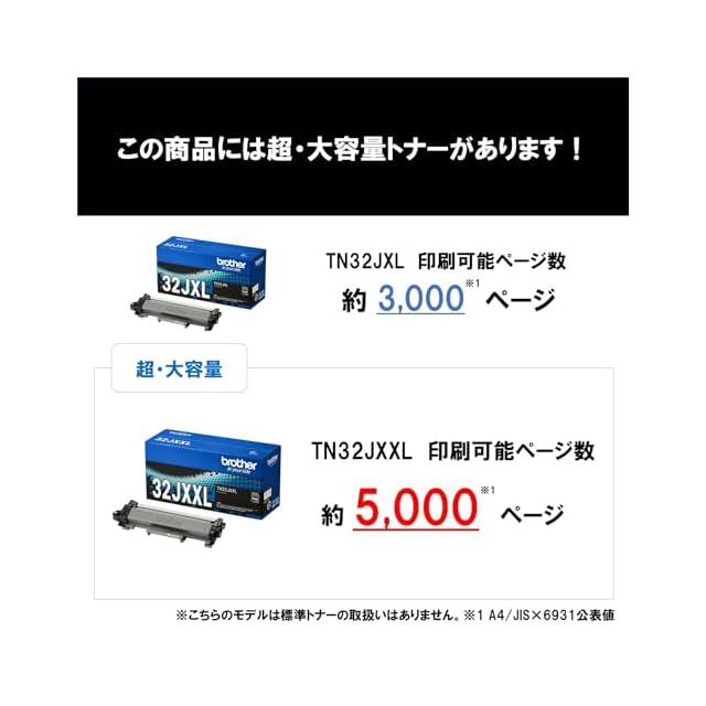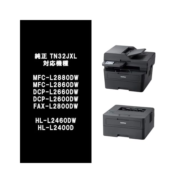 商品名:【ブラザー純正】トナーカートリッジ TN32JXL 対応型番:MFC-L2880DW、MFC-L2860DW、FAX-L2800DW、DCP-L2660DW、DCP-L2600DW、HL-L2460DW、HL-L2400D 他