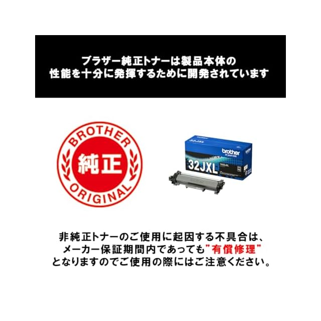 ブラザー純正トナーは製品本体の性能を十分に発揮するために研究を重ね、開発されています。非純正トナーをお使いになりますと製品本体の性能を十分に発揮できないだけでなく製品本体を損傷させる可能性がありますのでご注意ください。