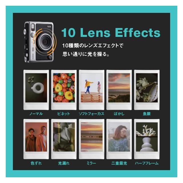 ✅10種類のレンズ効果と10種類のフィルム効果の掛け合わせにより100通りの写真表現を楽しめる。
