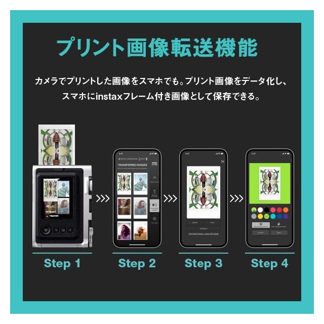 ✅「プリント画像データ保存機能」を搭載した専用アプリにより、フレーム付きのプリント画像をスマホに転送可能。