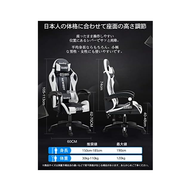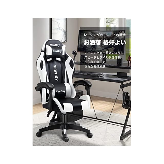 商品名:NewBoy ゲーミングチェア gaming chair オフィスチェア オットマン オフィス ゲーム用 リクライニング デスク/パソコンチェア 疲れない 椅子 テレワーク (黒と白)