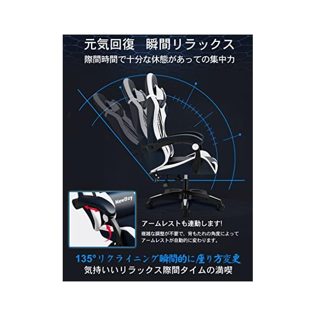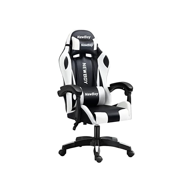 NewBoy ゲーミングチェア gaming chair オフィスチェア オフィス ゲーム用 リクライニング デスク/パソコンチェア 疲れない 椅子 テレワーク (黒と白)