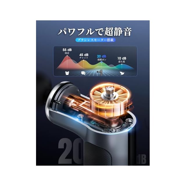 【パワフル&低騒音】Kycle筋膜リリースガンはノイズを低く抑えるため、先端ブラシレスモーターを採用し、 最大3200rpm/minでの作動音も45dB(日常会話の程度)以下に抑えられて非常に低騒音で、時間や場所に気にする必要はなく、周りの迷惑になる心配もなし、ジムやオフィス、いつでもどこでも楽しむことができます。