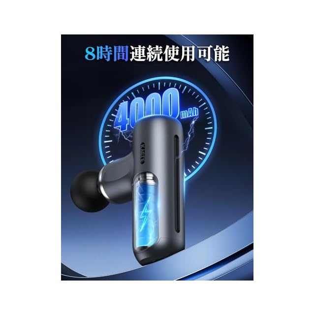 【Type-C急速充電&持ち運び便利】僅か2時間でフル充電!4000mAhバッテリーが内蔵され、最大8時間連続使用可能(電池の残量や充電環境、使用環境によって大きく前後します)。 Kycle筋膜リリースガンは一回のフル充電で、極上のボディーケアが何回も楽める。パワフルでありながら394gの小型設計で収納袋付きで持ち運びにも便利です。宅でのご使用はもちろん、職場/ジム/公園などにも簡単に持ち運び可能です。