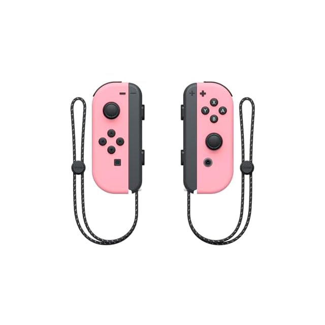 「Joy-Con(L)パステルピンク」と「Joy-Con(R)パステルピンク」に「Joy-Conストラップ(ブラック)」が2個付いたセットです。
