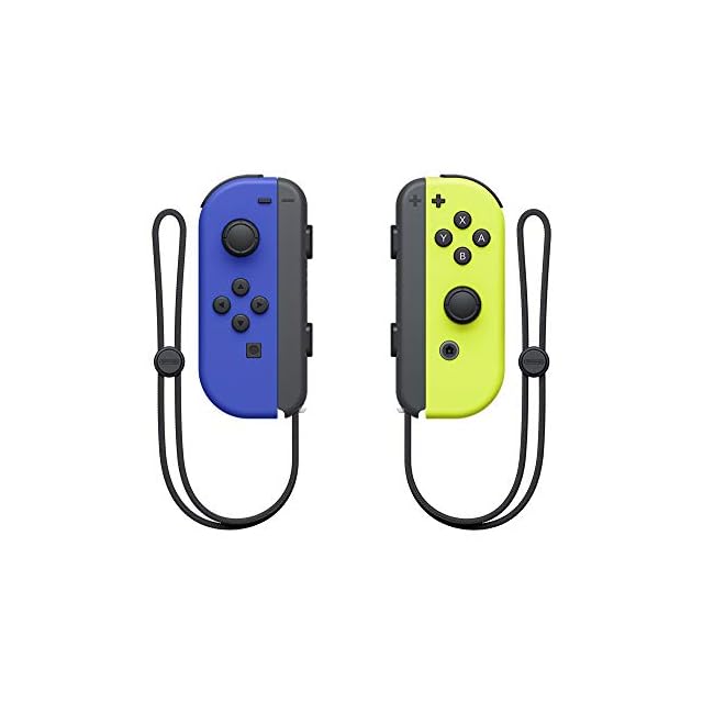 「Joy-Con(L)ブルー」と「Joy-Con(R)ネオンイエロー」に「Joy-Conストラップ(ブラック)」が2個付いたセットです。