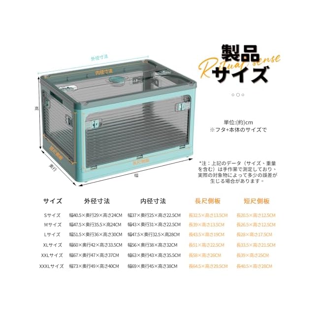 商品名:X XUNTAO【収納ボックス 折りたたみ】蓋付き 積み重ね 全方向から取り出せる 収納ケース 衣類 布団 小物 収納 折り畳み コンテナ ボックス 大型 プラスチック キャスター付き おしゃれ 組立簡単 防塵 防カビ 防湿 無臭 半透明 厚み 強い耐荷重 大容量 家庭用 車用 複数のサイズ 各種カラー(XXXL,73cm*49cm*40cm,143.1L)