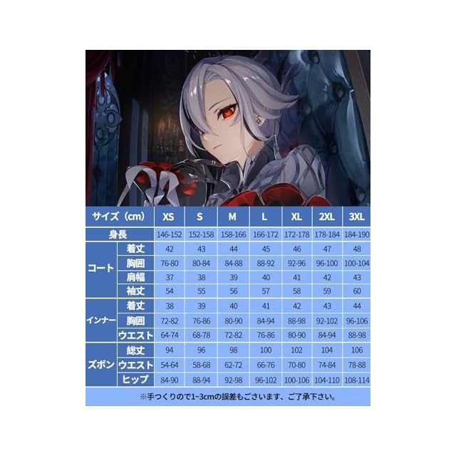 ※【セット内容】:「ウィッグ」+「コート」+「インナー」+「ベスト」+「手袋」+「ズボン」+「背中飾り」+「腰飾り」+「頭飾り」+「イヤリング」。ポリエステルな生地を使用し,質感や細部も丁寧につくられておりますので,本格的な着こなしが可能です。