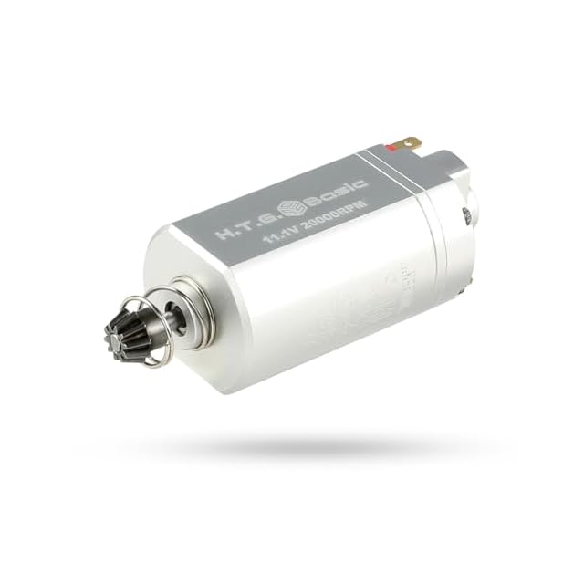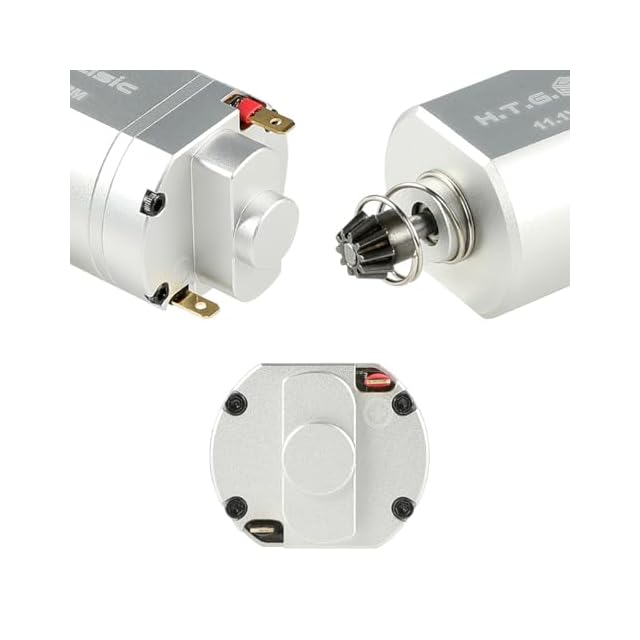 高精度CNC加工シャフトと新型スチール製D型ピニオンギアを採用し適合幅を広げ、ピニオンギアの交換も可能としています。CNCアルミ削り出しボディは高い剛性と放熱性を備えています。モーターケースの設計を一新し外形を従来型ブラシモーターに近づけ“交換するだけ”でブラシレスモーターのメリットを享受できるプラグインブラシレスモーターです。 【取付上の注意】 ・一部の機種で配線の取り回しの変更やモーターホルダの加工が必要な場合があります。 ・配線が直接半田付けされている機種が多いので110型平型端子の取り付けをおすすめします。 ・東京マルイ製次世代AK47はモーターケースの加工および、モーター端子の交換が必要です。