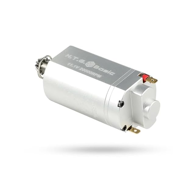 ブラシモーターに比べ非常に高速な起動と、瞬時に最高回転数に達する特性から、ハイレスポンスがされます。さらに高効率であることから、モーターの温度上昇や消費電力が抑えられます。 Eshooter製電子トリガーと協調開発されていますので、従来では不可能と言われていた効果的な電磁ブレーキが搭載され、トリガーOFFやセミカット時に素早く停止させますので、射撃フィーリングが向上します。 無負荷回転数:11.1V時は35000rpm 7.4Vリポバッテリ使用時は26000rpm ノーマル回転数・ハイトルク・高効率仕様です。